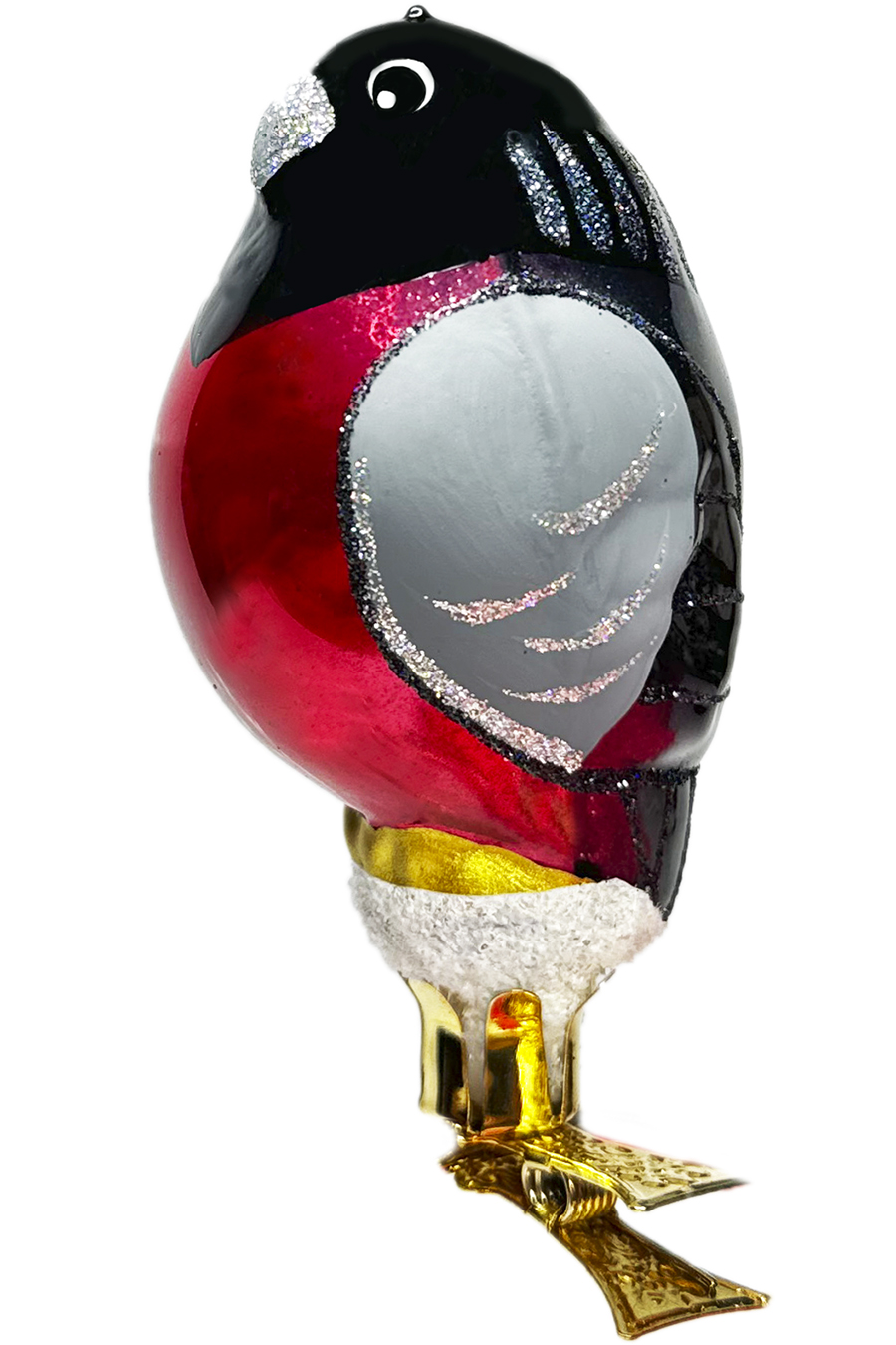 Снегирь выполнен из стекла, декорирован ручной художественной росписью, а так же переливающейся крошкой. В индивидуальной упаковке. В ассортименте. Размер 10 см.