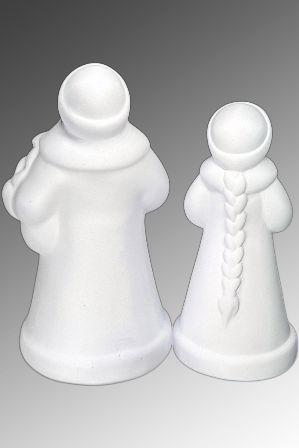 Заготовка из воздушного фарфора Дед Мороз и Снегурочка создана из тонкостенного фарфора. Можно использовать для создания различных видов росписи и творчества, а также как и самостоятельное украшение. Игрушка под ёлку. Отверстие для ниточки или верёвочки отсутствует. Дед Мороз 16,5 см. Снегурочка 14,5 см.
