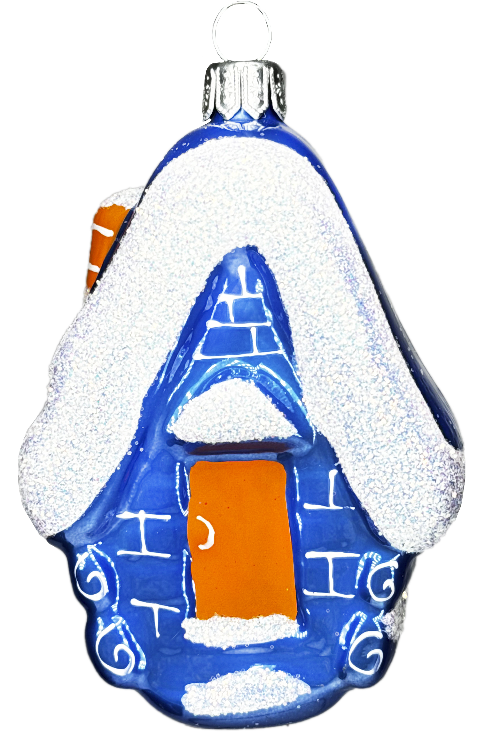 Домик выполнен из стекла, декорирован росписью и блестящей крошкой. Украшение для удобства имеет ушко для ниточки или крючка. В индивидуальной упаковке. Размер 8,2 см. В индивидуальной упаковке. Цвета в ассортименте.